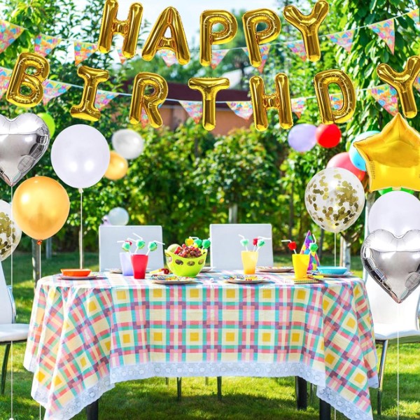 W tym zestawie znajdziesz wszystkie niezbędne elementy do stworzenia nienagannej dekoracji na przyjęcie urodzinowe lub inną specjalną okazję.