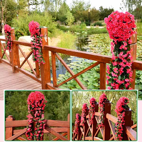 Ogrodzenia, balustrady balkonowe, drzwi wejściowe, ramy okienne, ściany wewnętrzne, klatki schodowe, tła wydarzeń i dekoracje ślubne – HANGROSE sprawdza się wszędzie tam, gdzie można coś zawiesić lub przymocować. Zastosowanie na zewnątrz: odporna na warunki atmosferyczne i promieniowanie UV. Zastosowanie wewnątrz: ściany salonów, korytarzy i sypialni. Trzymaj z dala od bezpośrednich źródeł ciepła i otwartego ognia.