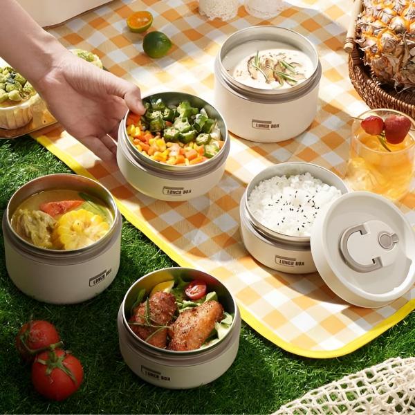 🥡 Ten wielowarstwowy zestaw pojemników na żywność utrzymuje ciepło ulubionych potraw do 4 godzin.